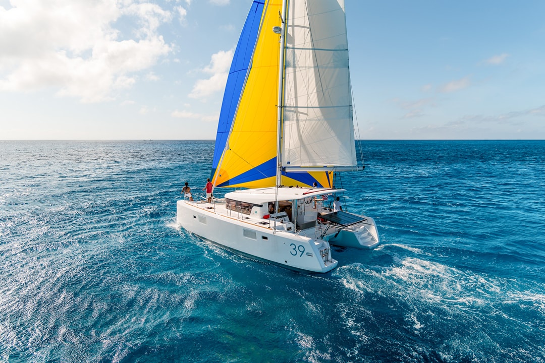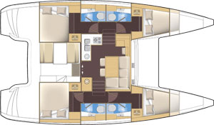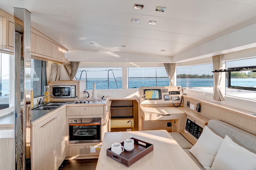 Castigator al premiului Best Multihull Sailing Yacht la Asia Boating Award 2016, acest nou membru al familiei Lagoon este o invitatie in lumea sailingului cu stil, iar spatiul generos, atat in interior cat si pe punte, va satisface cerintele celor mai critici pasageri. Spatiul comun este compus din livingul interior si cel exterior, care pot fi unite prin deschiderea completa a celor 2 usi de sticla ce le separa. Chiar si din interiorul catamaranului, echipajul poate avea o imagine completa a peisajului datorita faptului ca livingul este incadrat de geamuri pe toate laturile.